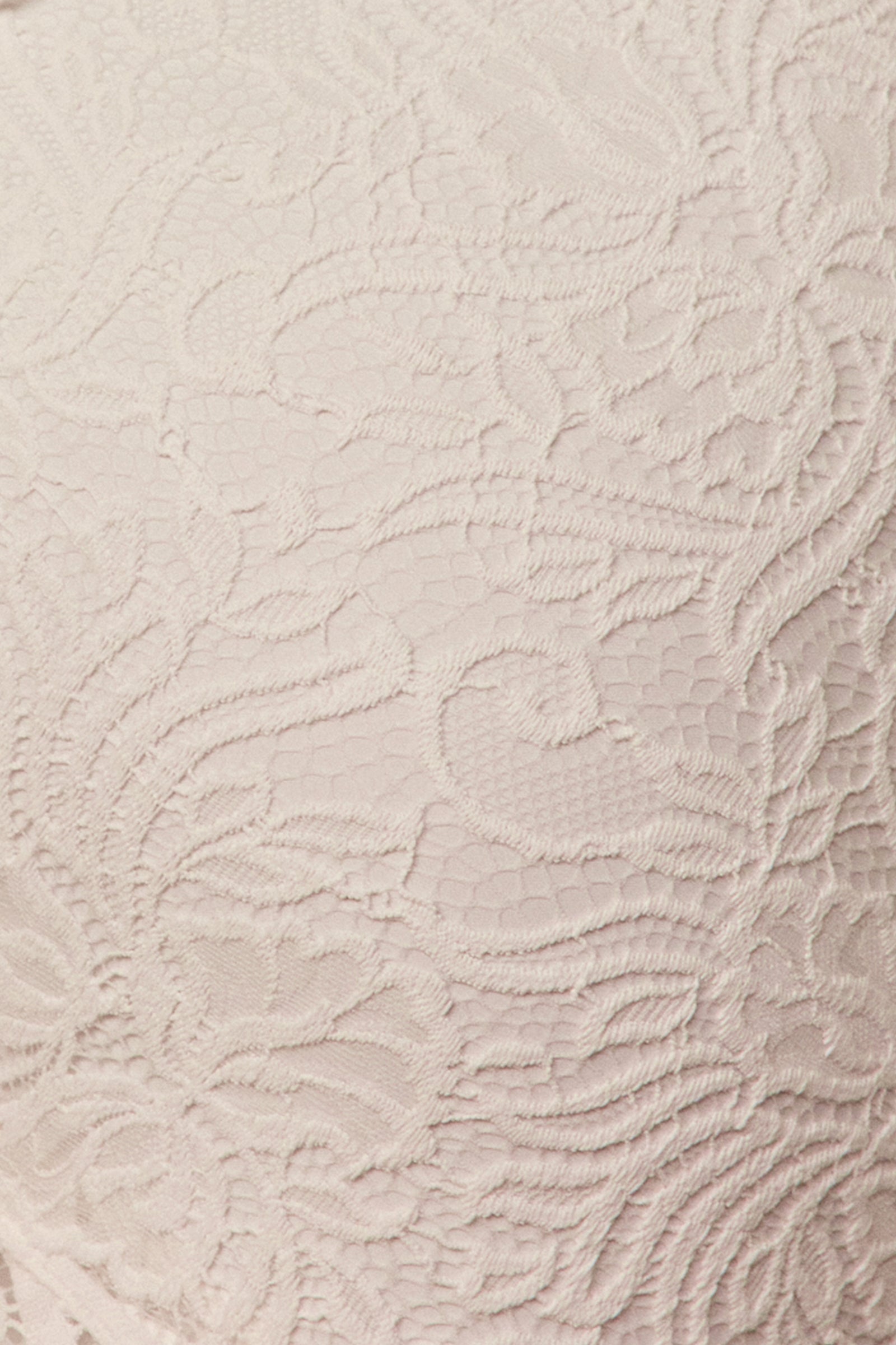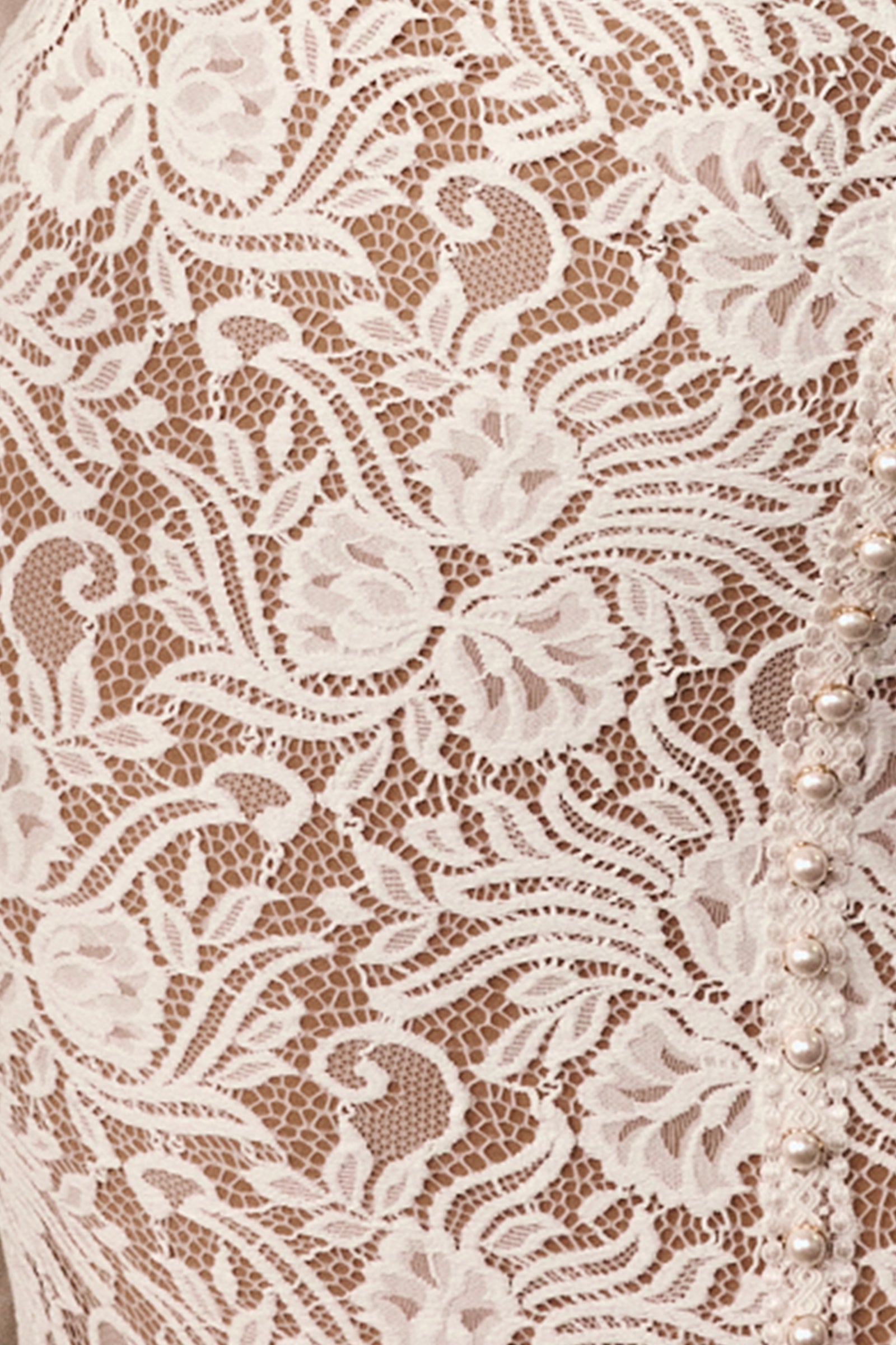 - Slim fit sleeves with curved hem and intricate lace trim detail