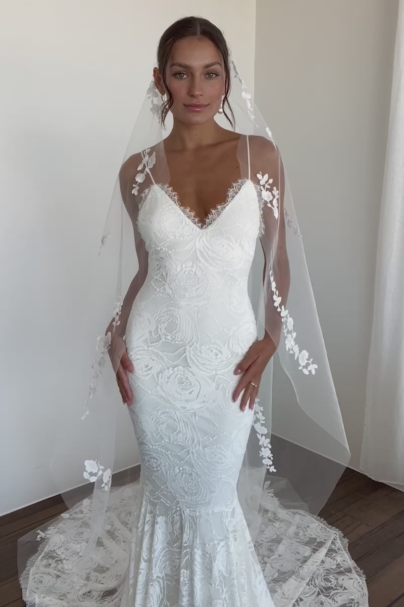 - Signature Rose lace design and dimensional pearlescent thread, exclusive to Grace Loves Lace