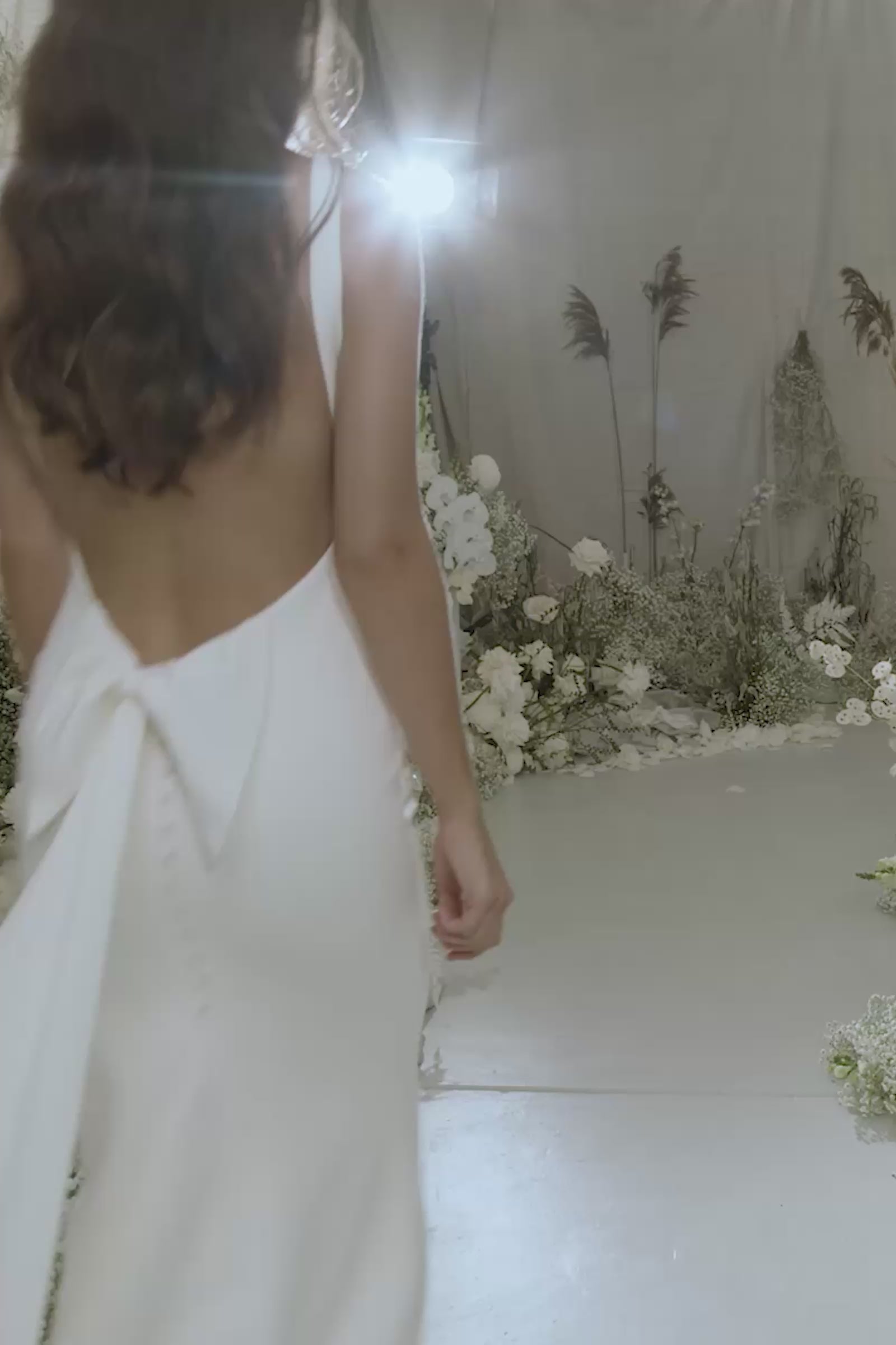 - Detachable oversized silk bow with exaggerated train