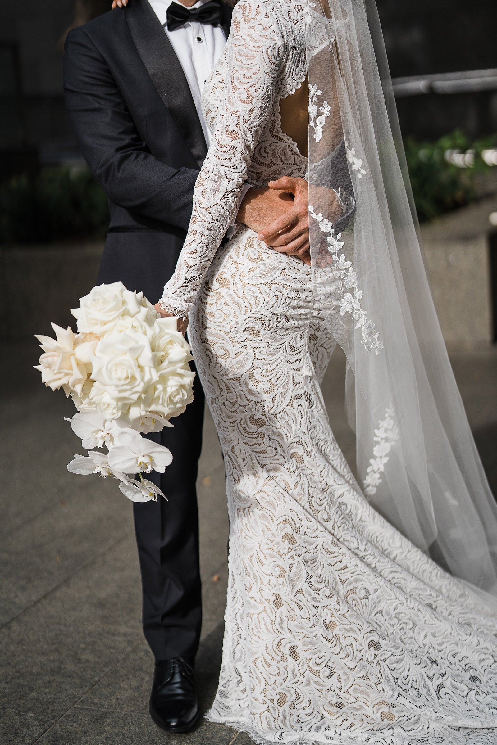 I loved feeling free and flowy. I didn’t want to feel constricted or heavy in a wedding gown and my dress made me feel so comfortable. The delicate detail in the lace of the gown was beautiful and I love that it was made to fit my body and I didn’t have to stress about gaining or losing weight before my wedding and needing last minute alterations.