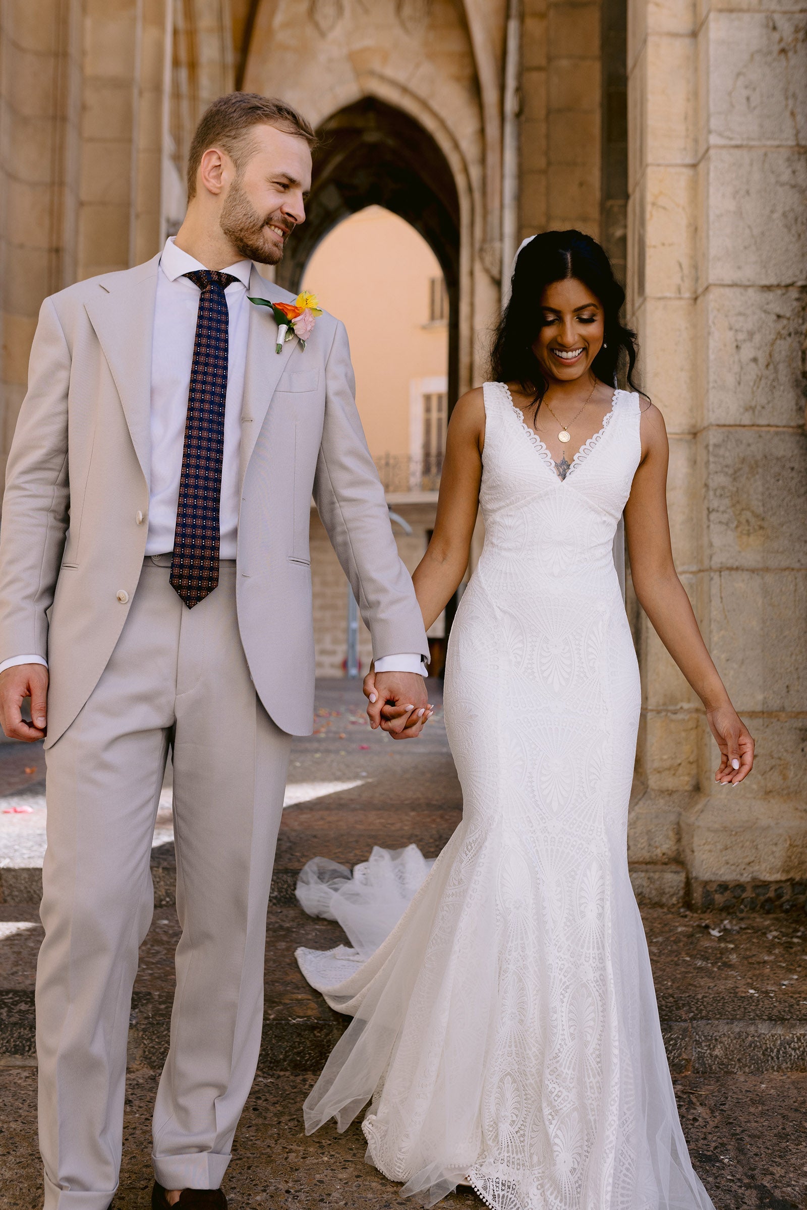 I loved feeling free and flowy. I didn’t want to feel constricted or heavy in a wedding gown and my dress made me feel so comfortable. The delicate detail in the lace of the gown was beautiful and I love that it was made to fit my body and I didn’t have to stress about gaining or losing weight before my wedding and needing last minute alterations.