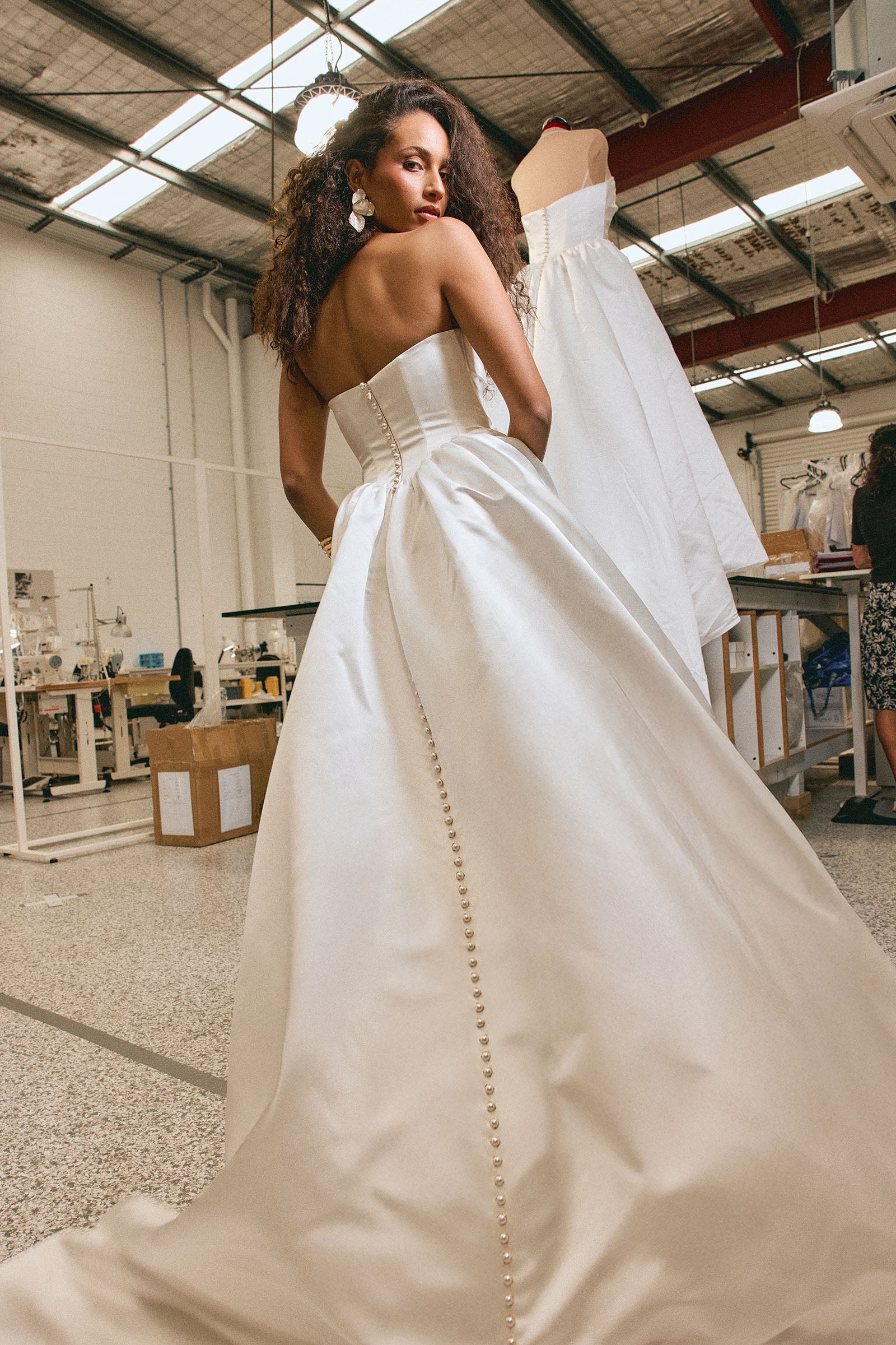 Our beautiful wedding dresses are designed and developed in our Australian studio. Our gowns are produced in both Australia and neighbouring countries, with facilities that each meet our strict certification guidelines. To learn more about the Grace way, visit Our Purpose page for more information.